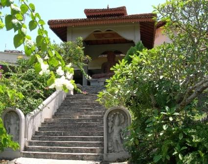 When we were getting close to our destination, I began reading the directions from the Lonely Planet travel book. We had made a reservation for the night at the Walawa Safari Village Hotel. The book only recommended two hotels and we found the first one which was supposed to be 8 km from the park entrance. According to the book, our hotel was 10km from the entrance but we were on a different road. We stopped at a police station to ask for directions and they sent us back the way we came saying we missed it. We think they are wrong but turn around and stop at the first hotel to ask directions. Looked like the jeep drivers were drunk and they kept asking us if we wanted rooms there…so we said “thank you” and left. Now we tried to call our hotel and no one answered. We were going back to the closest town rereading the directions and trying to make sense of them as we kept calling the hotel. Finally, the hotel answers and tells us to turn around and to continue pass the police station, the other hotel and then make a left turn when we see the big sign. Ok, he was close, we had to make a right turn, but we were there before dark and dinner was to be served in an hour. This was a really elegant place. It had five bungalows with 5 rooms each. Each room had its own front little sitting area separated by a gate and fence; 5 rooms (including ours) were air conditioned, large bathroom and clean linens and towels. This was heaven after Ratnapura!!! The bungalows were separated by stone walkways and lovely bushes and forest trees. The reception area had great maps and info about the parks and the dining room was clean and lovely. We were the ONLY guests on the first night before the opening of the park. The cuisine was Chinese with corn egg drop soup; fried rice; and three main courses, fish (they say fis), vegetable, and chicken. They were all delicious but the chicken was hot!! Refreshing pineapple for dessert and we were off to bed by 8:45 having to be in the jeep at 6:15am.