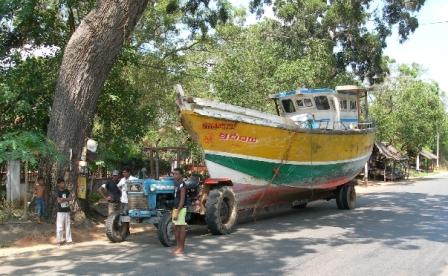 After throwing our clean up bags and a few other things into the back packs and stopping at the office to update the blog (and leave the computer locked in the office!) we were off. The park is about 90 Km (54 m) away and it took about 3 hours travel time going 40-50 kph (25 mph) when possible and it felt like we were flying with the curving roads, construction, and general traffic as we mentioned before. The first picture Tom took was of a boat that had been moved inland by the tsunami being finally returned to the water.