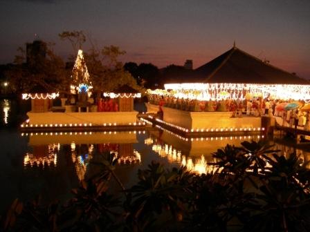 Afterward I went to the bank to get cash to pay for Helen’s ticket to India, the next month rental car fee, our stay in Colombo and next month’s house rent. I don’t like walking around with $2000 in my pocket but things here are best done on a cash basis. My next stop was the US Embassy Food Mart where I bought items for our return to Matara. I got back to Ruki’s had a late lunch and then rested for an hour before getting ready for the Navam Perahera at the Gangaramaya Temple in Colombo that is held during the February Poya Day (full moon) each year. It is the second largest Poya Day festival in Sri Lanka.