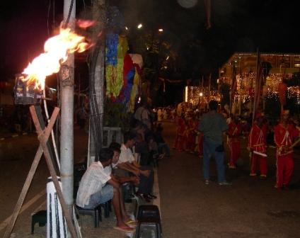 The parade made its way three times around Beira Lake and the front of the temple. There was some excitement about one hour into the procession when an elephant got lose and people started running away in panic. We started to move ourselves until we saw they got it under control. I ran my battery down taking so many videos and we left about 9:30 when the procession was starting its third round of the lake. We got up close to the procession on its second tour in front of the temple which was ablaze with lights. The parade was still going strong but most people were leaving after they had seen one full procession and we left soon afterwards. We took a Tuk-Tuk home and got there about 10:45. We were tired but it was a great time.