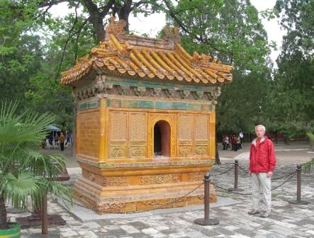 It took ten minutes to drive to the next burial complex, that of Emperor Chang Ling. This Sacred Silk Burner (small yellow-tiled building) is in the courtyard.