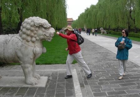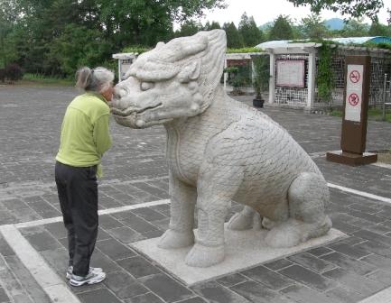 Our taxi driver, who was with us all day, then drove us to the entrance to the entire tomb complex. It is called the Spirit Way and is about 4 miles long. He dropped us off at the entry triumphal arch and later picked us up about a mile north. We walked through the Great Palace Gate (Red Gate) and proceeded up the Sacred Way (God Street) along the route the burial processions would take.