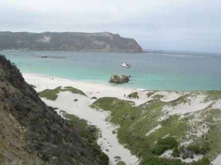 Helen –We slept in port and then departed for the first island at 4 in the morning. The water was choppy and when we awoke, I was sea-dizzy until Tom gave me the wristbands that work like acupressure, then I was great. Lucky for him he had the patch behind his ear; this was the first time on a small boat like this that he didn’t get seasick! San Miguel is the westernmost of the Channel Islands and receives the brunt of the severe weather from the open ocean.