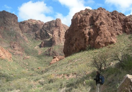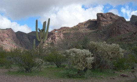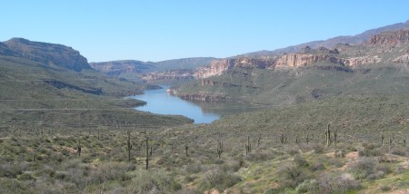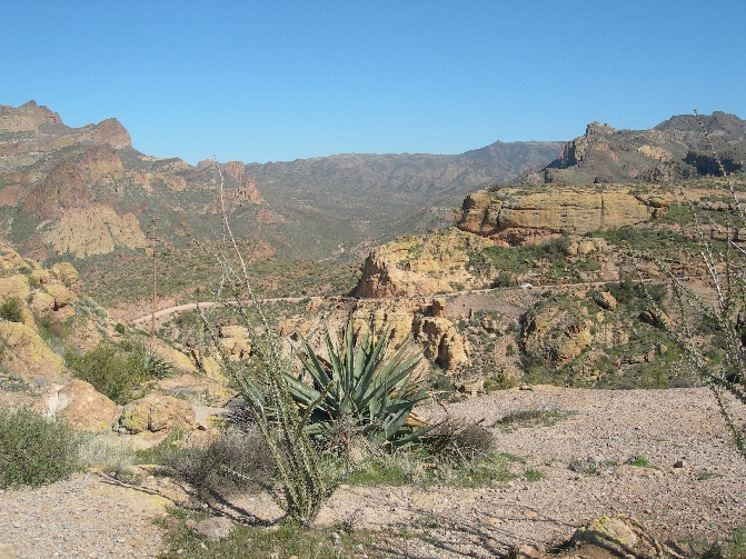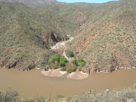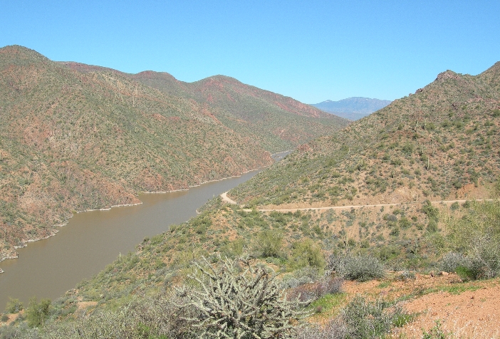 Afterwards, we drove the Apache Trail Historic Road (Rt 88) down from Roosevelt Lake and dam toward Phoenix. This Scenic Byway along the Salt River, which was used by the Apaches as they migrated between their winter homes in the high country and their summer homes in the basin, is definitely worth the time and effort. It is a heavily traveled dirt road (slow) but has spectacular scenery along the river and then through the Superstition Mountains.