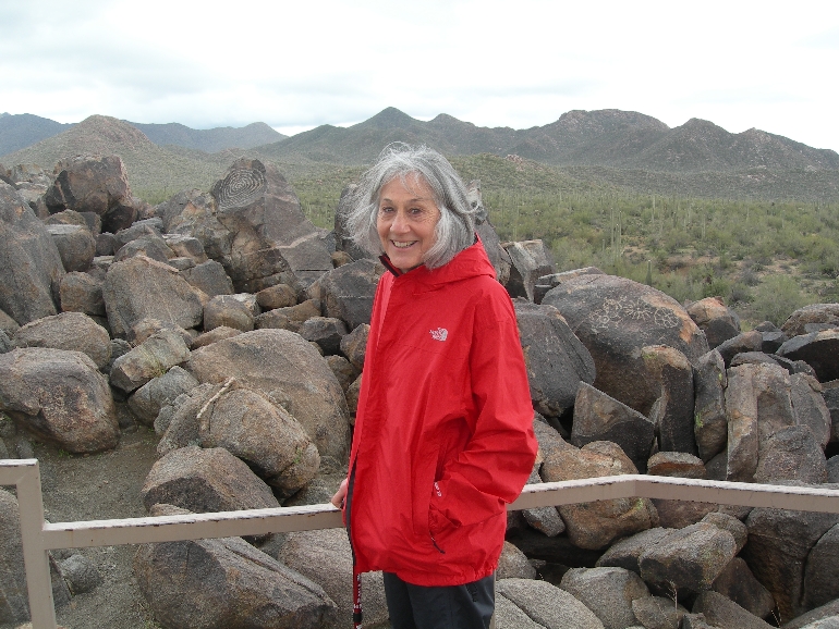 We continued to the west segment of Saguaro NP, toured the Visitors Center and then drove the Hohokam Road completing the Valley View Overlook trail and the Signal Hill Petroglyphs trail. Too cold for rattlesnakes, check out the Saguaro cactus skeleton.
