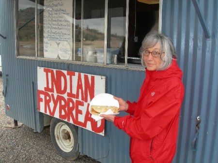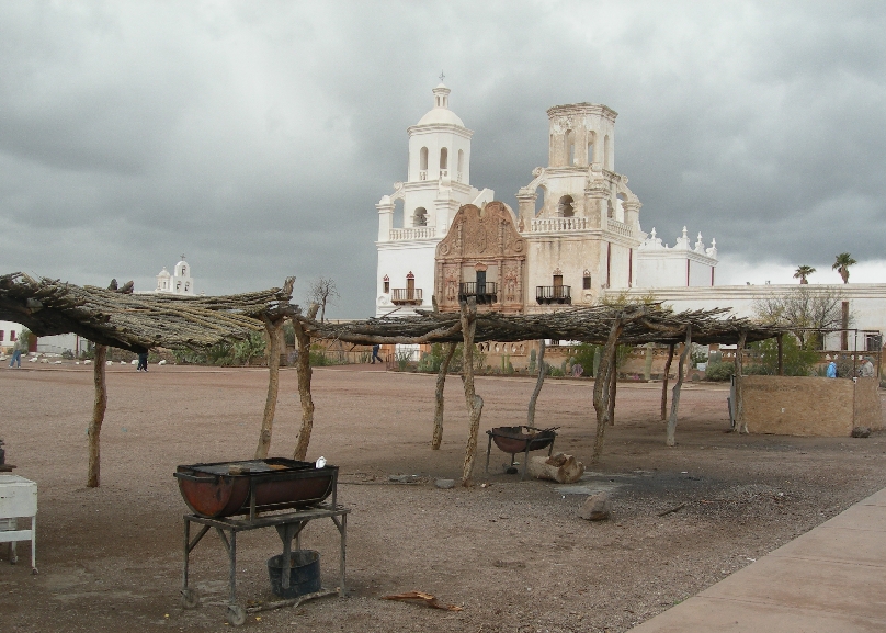 Just south of Tucson we stopped at the San Xavier del Bac mission. We had hot beans and cheese on the frybread for lunch (see pic). Father Kino first visited the O’odham Indian community here in 1692. The current church dates to the 1820s. Note the squaw statue in the church.