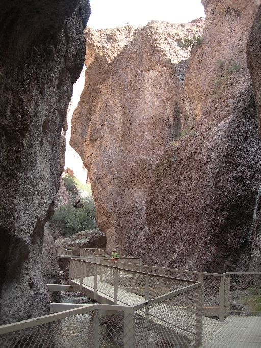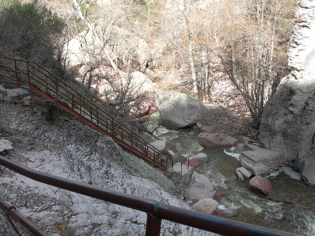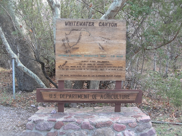 Continuing, we drove to Glenwood and the Catwalk National Recreation Trail. It is a 2.2 mile (roundtrip) trail that provides a glimpse of historical and culture events that occurred a century ago. It started when gold and silver were discovered in the area and a mill was built to crush the ore at the bottom of Whitewater canyon. A pipeline was built, starting 3 miles upstream, to carry water to the mill. Workmen used to walk up the canyon on the pipe to maintain it – thus the name catwalk. The mill is gone; remnants of the pipeline remain as well as a beautiful riparian area along Whitewater Creek.