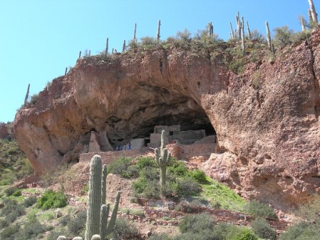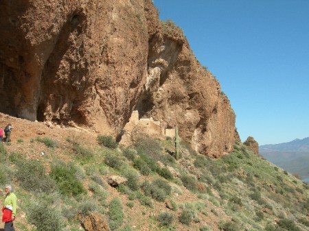 Friday March 12th – we left Globe at 7:30am to be sure we were on time (had reservations) for our ranger led hike and tour of the Upper Cliff Dwellings at Tonto National Monument. Access to this site is only offered a few times each week. The ranger did an outstanding job explaining the flora, fauna and history as our small group climbed the 600 ft (3 miles round trip) to the ruins. When finished, Helen and I did an additional mile on a paved trail to the Lower Cliff Dwellings.