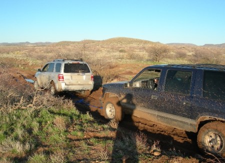 Long story short, we got stuck about a mile from the pueblo at 5pm. I stepped out in mud up to my ankles and proceeded to place rocks around all tires. There was NO ONE around in this wilderness area and I was afraid we would have to spend the night in the vehicle, hike out to get a tow truck the next day and miss our flight home. I was really upset when the first pavement of rocks didn’t work and we sank deeper in the mud! At that point I saw a Suburban about a quarter mile away and was able to flag him over to us. The driver was heavily bearded, packing guns, dressed in camouflage and looked like he would either eat us or be able to help us! Well, he had a towing strap. So I crawled in the mud under the car and attached it to my rear axle and then that old beat-up truck (4-wheel drive) was able to pull us out. As it turned out, the man was hunting coyotes and we were just lucky he was in the area.