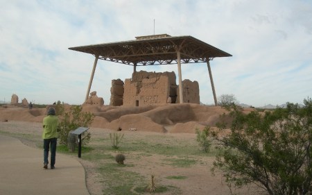 Saturday March 6th – Arrived in Phoenix last night but Helen’s bag did not – long story. We visited Casa Grande Ruins NM in the morning. It is the first cultural and prehistoric site to be protected by the US government. It was set aside in 1892 by President Benjamin Harrison. The “Great House” is four stories high and was built in 1350 as an astrological center for the Hohokam Indians farming community. The protective roof was built in 1932.