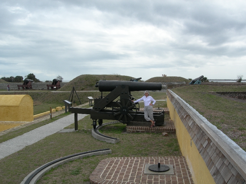Fort Moultrie is part of the Fort Sumter NM and is located on Sullivan’s Island just across Charleston Harbor. A palmetto log fort was built here in 1776 and that year Colonel William Moultrie prevented the British Navy from entering Charleston Harbor. On December 26, 1860, six days after SC withdrew from the Union, the small Federal garrison abandoned the fort and moved to Fort Sumter. Cannon from Fort Moultrie, now occupied by SC militia, participated in the firing on Fort Sumter that began the Civil War. The Fort was part of our coastal defenses from 1776 to 1947. Different parts of the Fort are now laid out to illustrate the periods 1776-1793, 1794-1808, 1809-1860, 1861-1872, 1873-1897, 1898-1939 and 1940-1947.