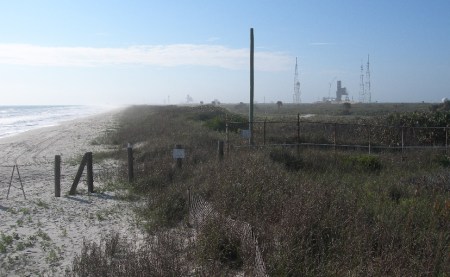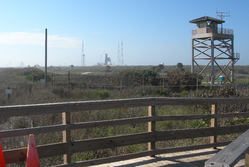 It only took about a half hour to drive to Playalinda Beach at the south end of Cape Canaveral National Seashore. We walked about two miles (more shells!) south to the fence and guard tower of the Kennedy Space Center. I believe it is as close as you can get to the launch pads.