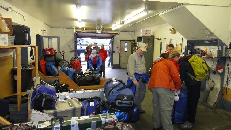Matt helping carry gear and packing some gear for flight to Kotzebue.