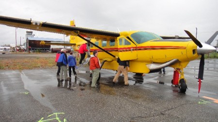 8/25 It was raining when we drove to the airport for our Wright Aviation flight to Beetles, population 27 during winter. We received two back country orientations one for Gates of the Arctic NP and one for Kobuk Valley NP at the small but modern NP Visitors Center. As gear was sorted and packed it became windy and quite cold.