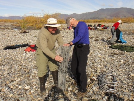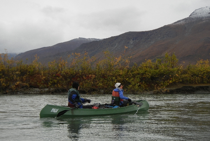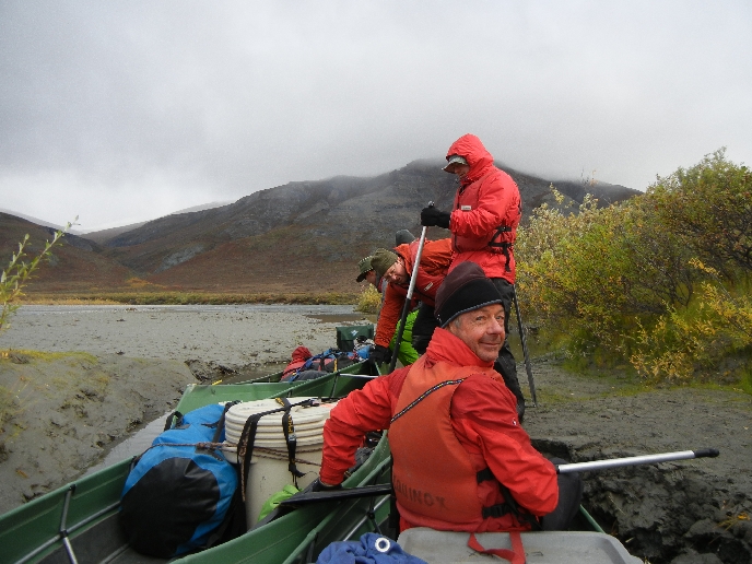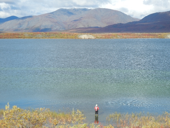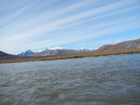 There are no trees on the upper Noatak, so there are no tree “strainer” problems. At the same time there was a 3-4 mph current and the water is cold. We had a lunch break standing in the willows out of the wind and then stopped at the mouth of the Ingling River where we took a short hike up-river.