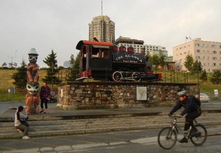 8/24 I enjoyed a French toast breakfast with another guest from Holland and then rode the bike downtown. There are two monuments along the Chena River, the first is to Native and born Alaskans. The second is the Lend – Lease Monument. During WWII U.S. women pilots flew 8,000 fighter planes to Fairbanks. They were then flown by Russian pilots to Siberia and into the war in Europe.
