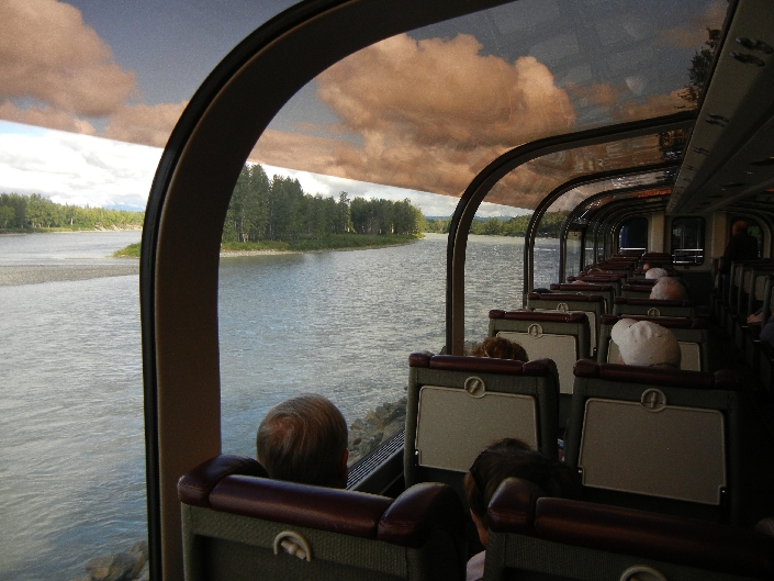 8/21 I boarded the Denali Star Alaska Railroad train in Anchorage at 8am. I selected Gold Star service so I would have a reserved seat on the second level of an observation car. However, when on the train I discovered that I could have selected the lower fare “Adventure Class” and still had access to an observation car. That is what I would recommend.