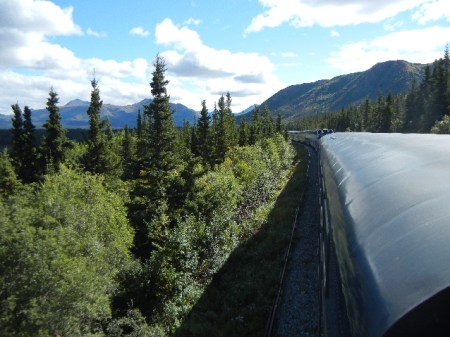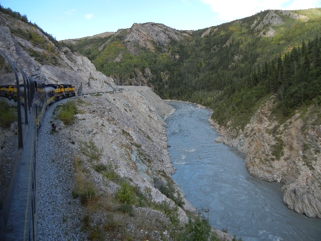 The train then went through the Indian River Canyon where we saw many beaver lodges and ponds. The track then climbed toward the tree line and crossed Hurricane Gulch on a 914 feet bridge, which is the longest on the railroad. A bit later the train reached its highest elevation of 2,363 feet at Broad Pass.
