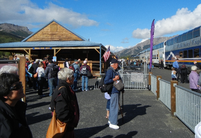 Most people exited the train (e.g. the cruise ships unloaded their private cars) at the Denali stop as the weather improved to partly cloudy. The Denali stop was dominated by tourism facilities and businesses.