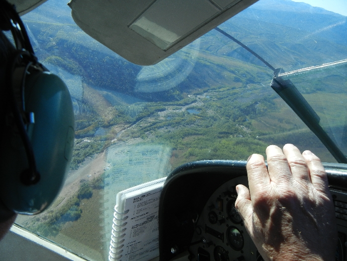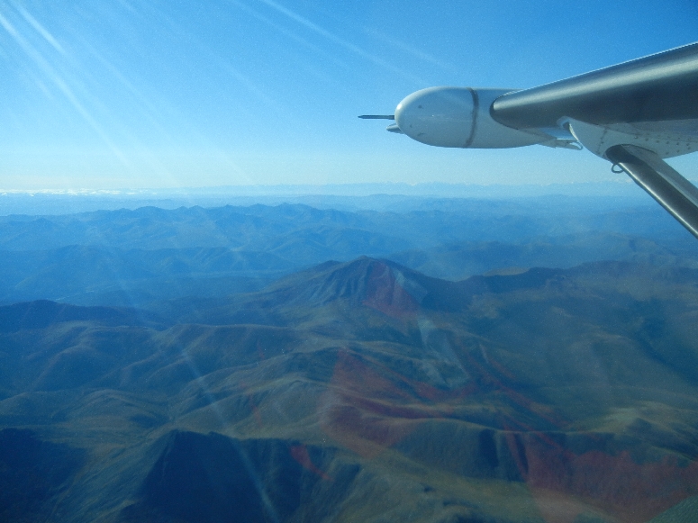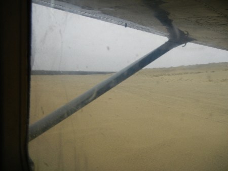 We heard a plane come in about 6pm and quickly tore down the wet tent and rushed to the airstrip. Another plane arrived shortly after. Kevin, Carla and gear were on the first flight out and Barbara, Dave and I were on the second plane that lifted off about 6:20. Leaving the dunes behind –