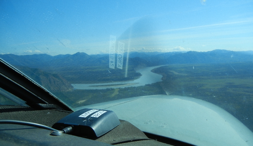 I left Fairbanks this morning on an Everts Air Caravan about 2 hours late because we had to wait for the fog to lift at the flight destination of Eagle on the Yukon River. Flight to and arriving in Eagle –