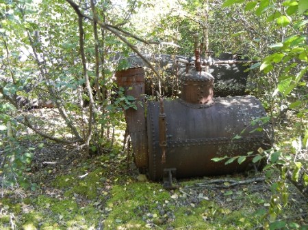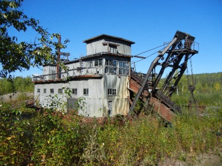 Glenn had completed his chores and volunteered to give me a personal tour. We started by going two miles further up the creek to where the gold mining dredge had started its work in 1936. The remains of a blacksmith shop and work shed are now located there.