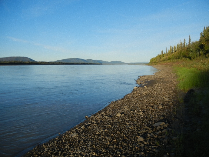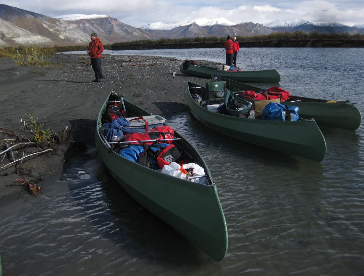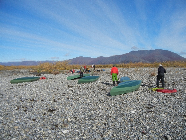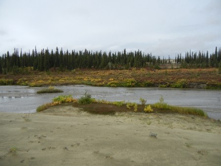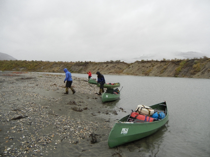 We lugged all the gear down the slope and loaded the canoes. Dave and I paddled over to the old camp on the gravel bar but were unable to find any of the lost gear.