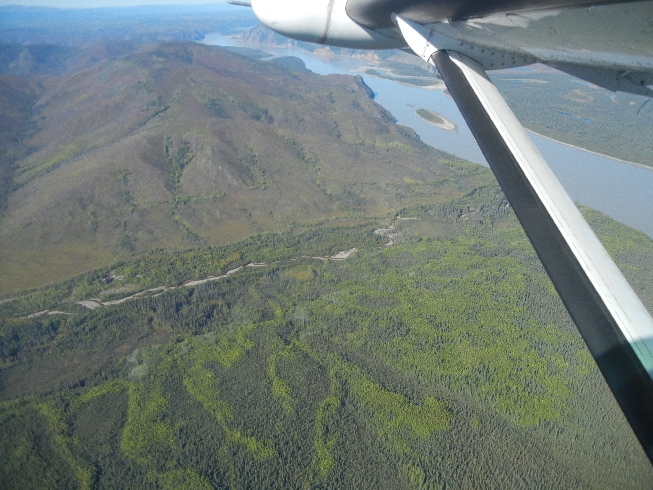 The flight normally returns to Fairbanks but I paid an extra fee to be dropped off at the historic Coal Creek gold mining camp 4 miles from the Yukon River in Yukon-Charley Rivers National Preserve. Flight to Coal Creek along Yukon –