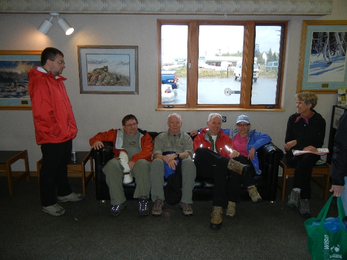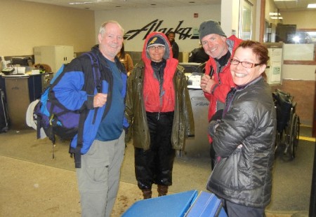 When we arrived, we were taken directly to Alaska Airlines for our 7:39 flight. We got there about 7:20. Karen and Steve were there already having been picked up from the gravel bar about an hour before we were picked up at the sand dunes.