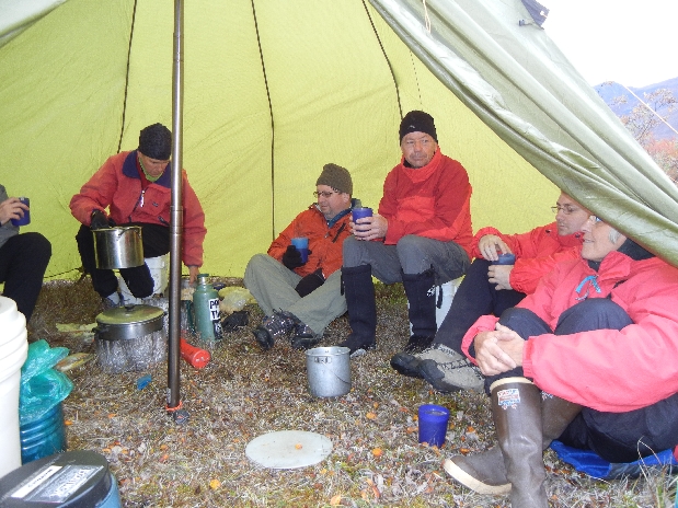 9/3 It rained all night and has continued through the morning and early afternoon, I am writing this at 2pm. Karen and Steve were not able to be picked up last night or this morning so we are sure they are waiting for a break in the weather. Meanwhile, Rick, Matt and Andy are ready to be picked up for their flight to Kotzebue and further connections.