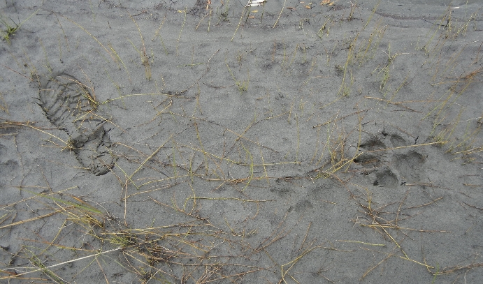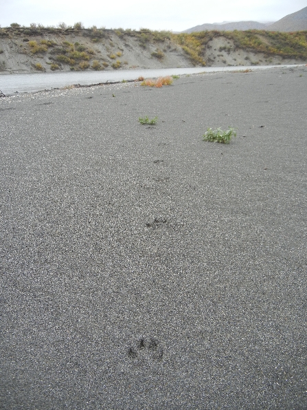 A common activity is examining tracks in the sand and having our guides help us identify them – bear, moose, caribou, wolf, snowshoe rabbit, etc. Wolf tracks –
