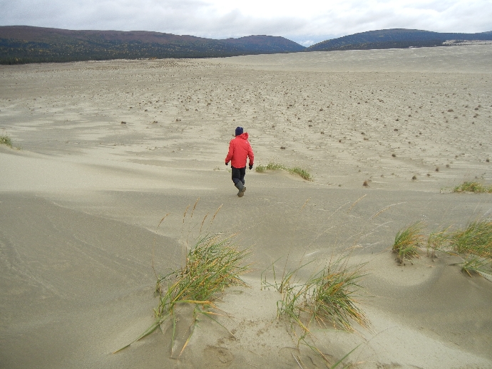 The rain stopped and at 3pm Dave and I left for a hike on the sand dunes. The Kobuk Sand Dunes comprise about 25 square miles of the National Park. We hiked the dunes for about three hours. The sand is very fine and hard packed for the most part except on the downwind slopes.