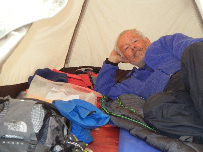 There were some cheers when the sun came out as we put up our tents on the bench between the river and Lake Matcharak. Everyone had gear and clothes that were soaked and it gave us an opportunity to dry out.