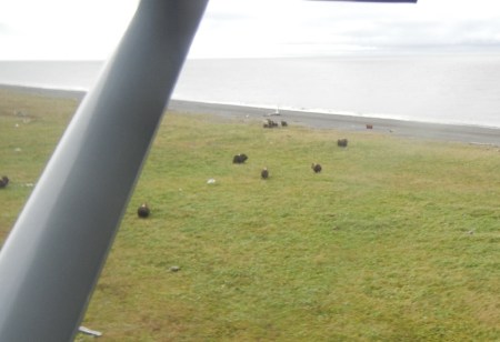 We then flew across the Kotzebue Sound to Cape Krusenstern and then along the coast. There are several “subsistence cabins” there which are owned by local natives as well as many Muskox.
