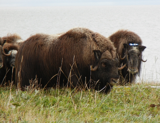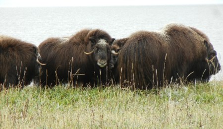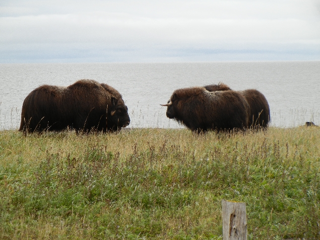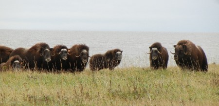 As we flew back across the tundra of the Land Bridge I saw a couple of lone reindeer and then a group of Muskox on Cape Espenberg.