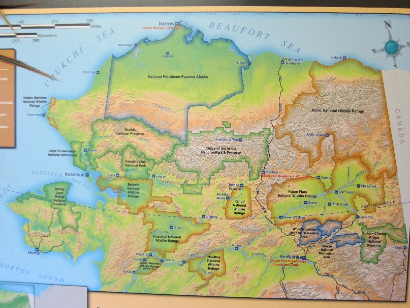 I next visited the Morris Thompson Cultural and Visitors Center, which included a museum, theater and information from national, state and local public/private sources. I picked up NP pamphlets for the parks I would be visiting and checked out the topo maps of those areas as well.