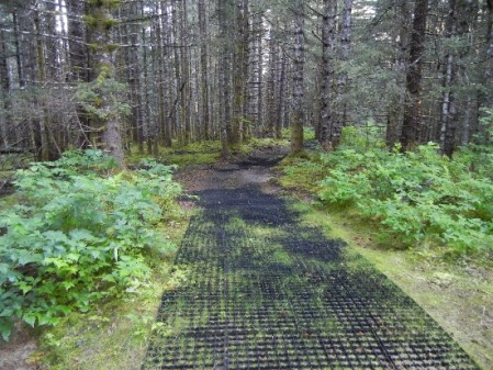 I started my hike thinking it was a little over a mile one-way. The U.S. Fish and Wildlife Service that maintains the trail had placed connected 18” x 36” plastic grids about an inch thick on three quarters of the trail. It made walking easy and prevented the ATVs from digging up the trail.