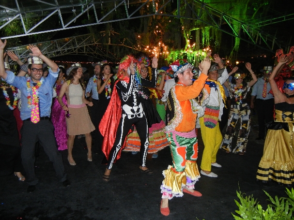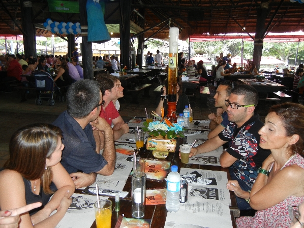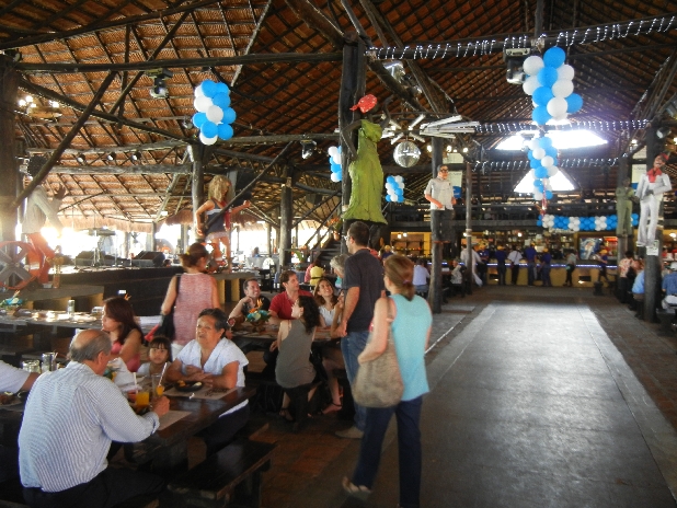 6/16 – We had a late breakfast and about noon traveled outside the city to Tinajeros and the La Tinaja Restaurante Bar. This is a cattle ranch where they have a huge under roof open area with picnic tables, stage, dance floor and bar. In the center is a runway where they parade horses on the hour.