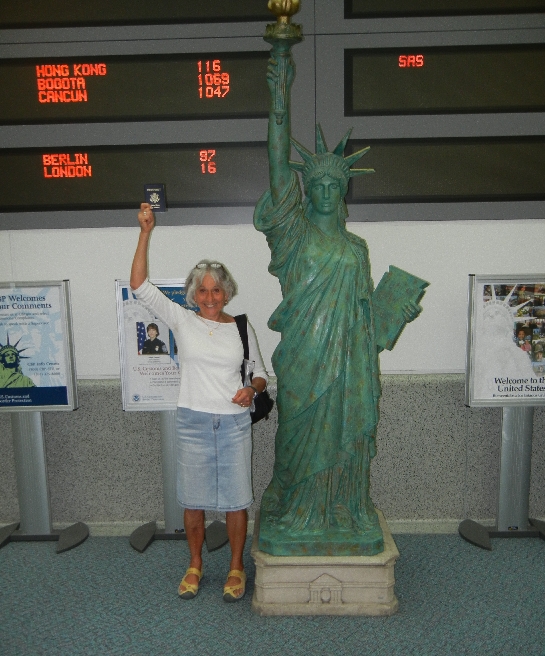 6/17 – We took the shuttle to the airport at 6:30am and arrived in Newark about at 3:30pm. Glad to be back in the USA, note passport torch! However, we had plane problems and did not get home until 2am the next day!
