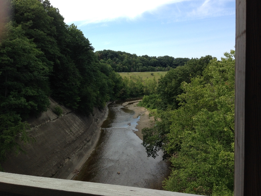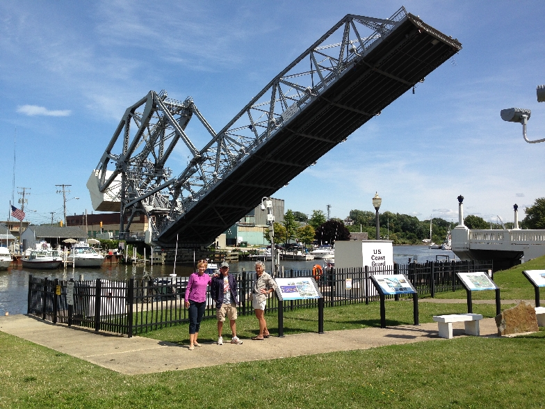 August 15, 2014 – visited Ashtabula in the very corner of northeast OH with Dick and Jan. During the late 19th century, boats brought iron ore here. It was loaded on rail cars and taken to Youngstown and Pittsburgh’s steel mills. At that time it was the busiest port on the Great Lakes. Now some coal is being moved in the opposite direction and there are efforts to “clean-up” the river and Bridge Street area with an emphasis on tourism and recreation. This is a picture of the Ashtabula Lift Bridge.