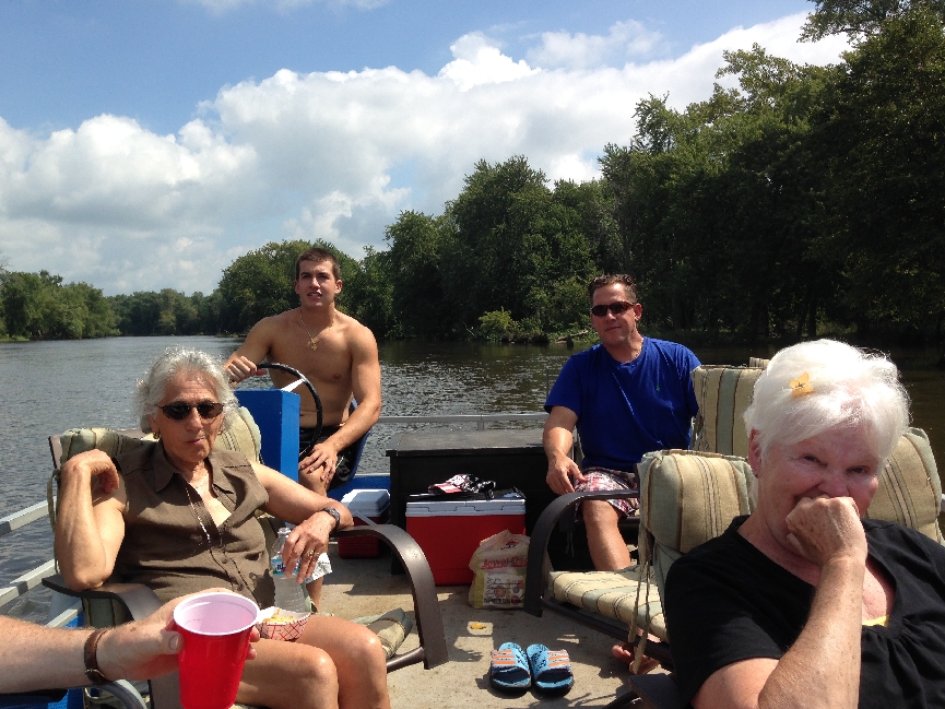 On Labor Day we were invited by Dave and Suzette to their refurbished summer cottage on the Kankakee River for a pontoon boat ride and a steak dinner! We have to dutifully record here, that though Little Dave warned his father that he was going to run out of gas if he went too far or fast, we ran out of gas about a hundred yards from the dock and started drifting backwards with the current. Fortunately, we were rescued by another boat and towed to shore.