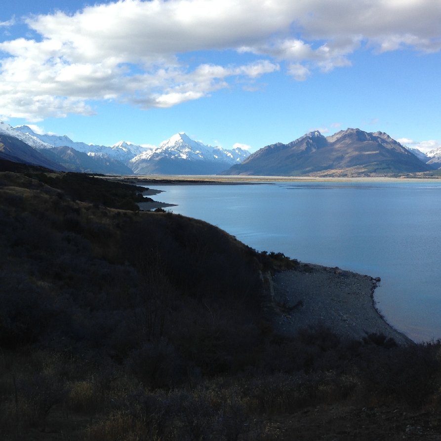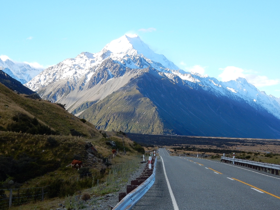 Entering Aoraki/Mt Cook National Park, Aoraki is the Maori name for Mt Cook