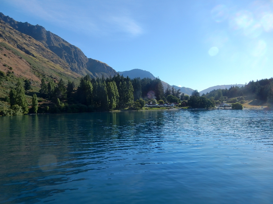 Drove to Manapouri to check into our room and discovered it was taken! The good news is that they gave us an entire vacation house for the night instead. Great views over the mountains and river.