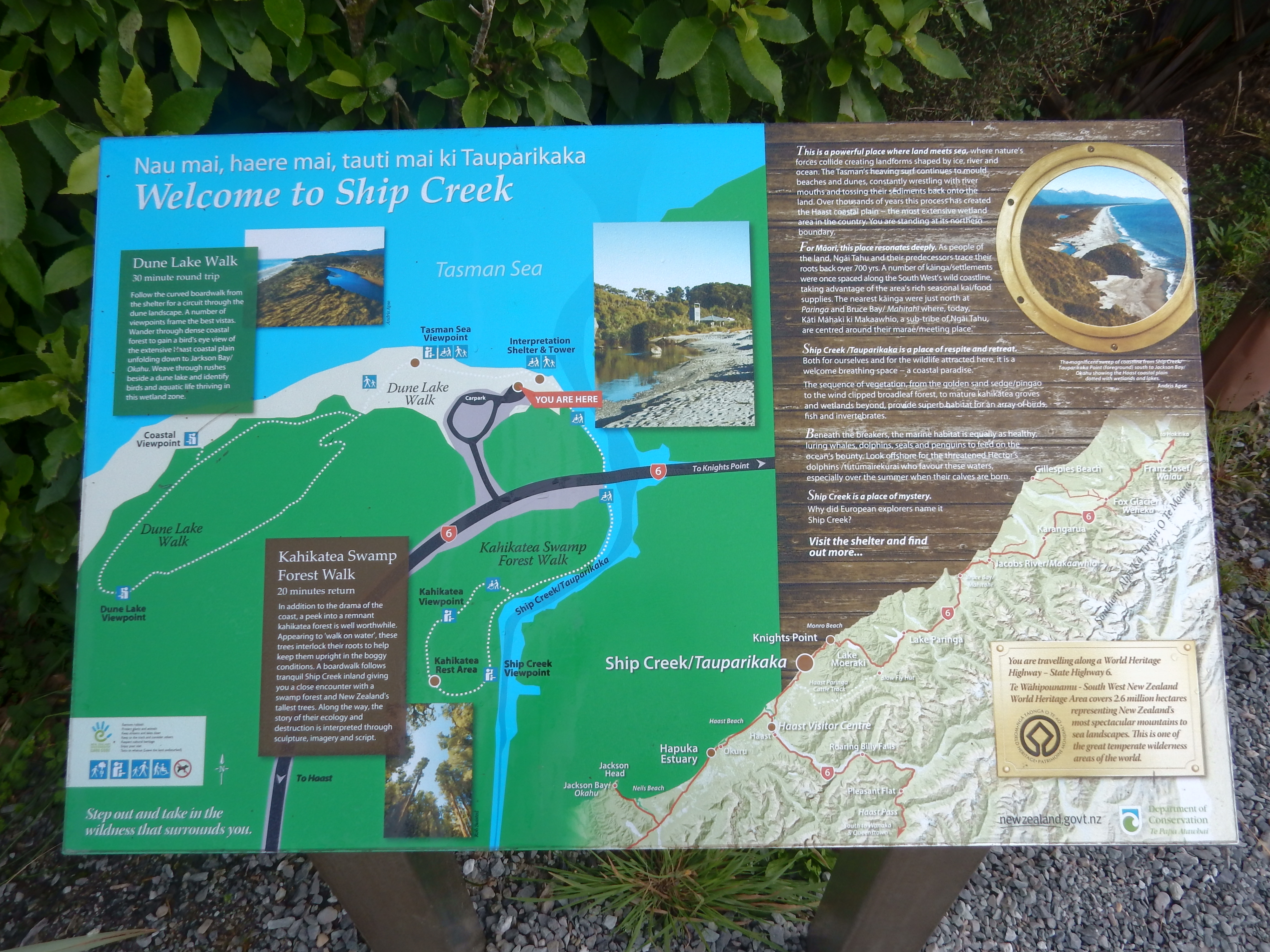Notice that the map states 2 hours for the loop. In the U.S., trails are stated in miles. In New Zealand they are stated in minutes and hours. This estimate is based on the average adult hiker moving at a moderate pace. The advantage of the New Zealand system is that it considers terrain, e.g. difficulty of route. However, I am still preferential to our system, probably because I am used to it and like to determine my own level of difficulty. At the same time, I think the loop was about 4 miles and we did do it in two hours stopping only for pictures.