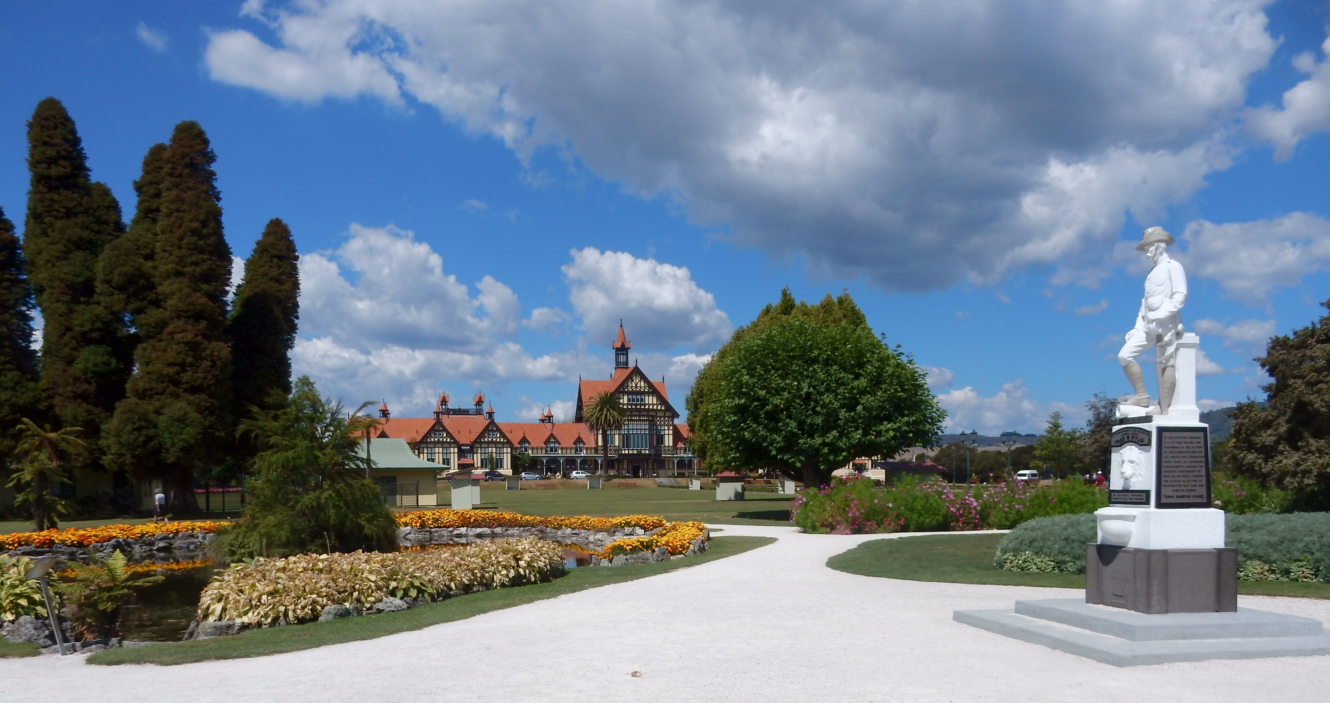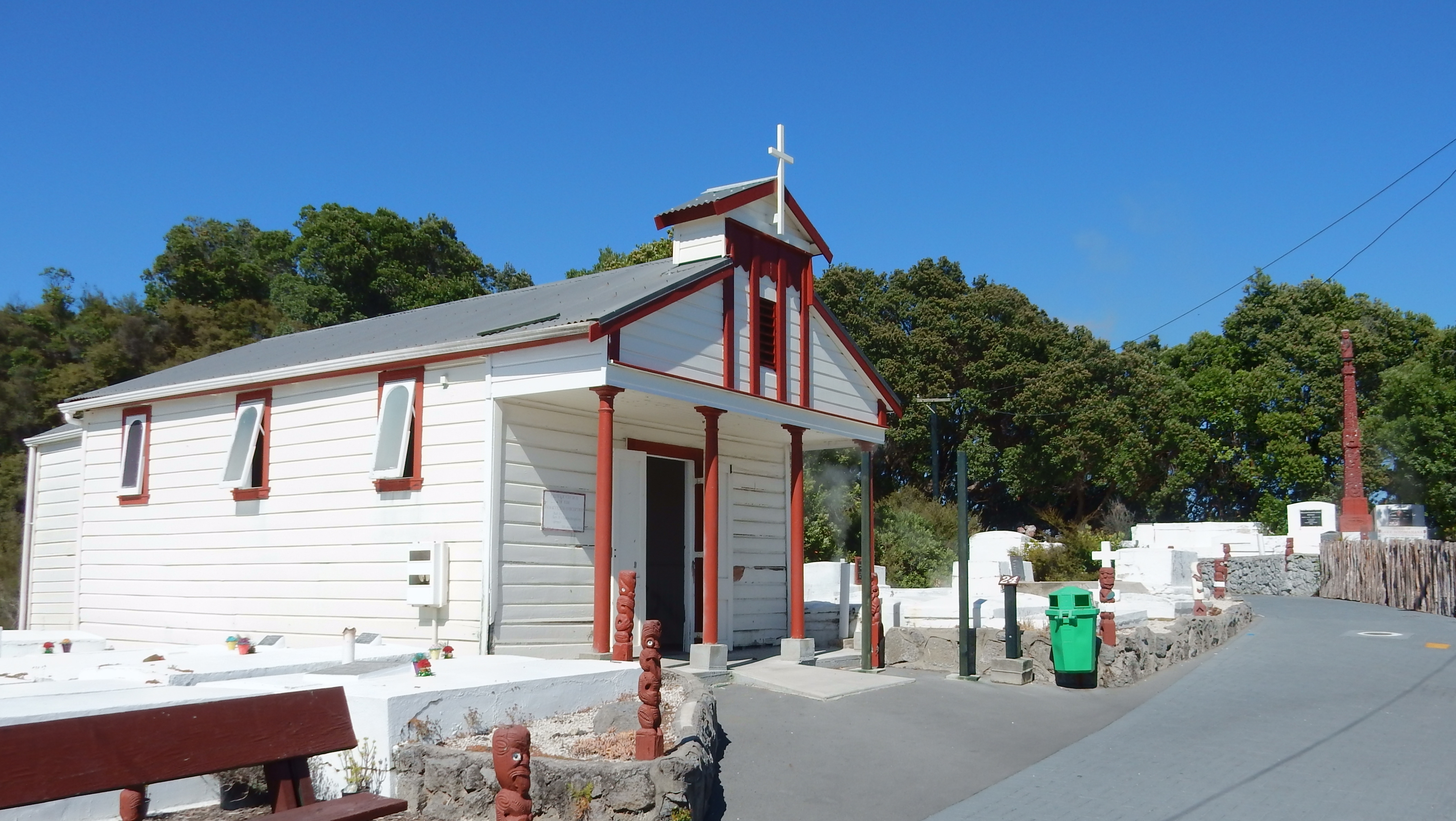 2/5 – Woke up to rain, packed and were out of our cabin at 6:30am. We were never able to see the tops of the volcanoes. Perhaps we’ll get a view on the way back to Auckland. We drove south on a very curvy, up-down, Rt 4 to Whanganui. It was slow going but the scenery was great.