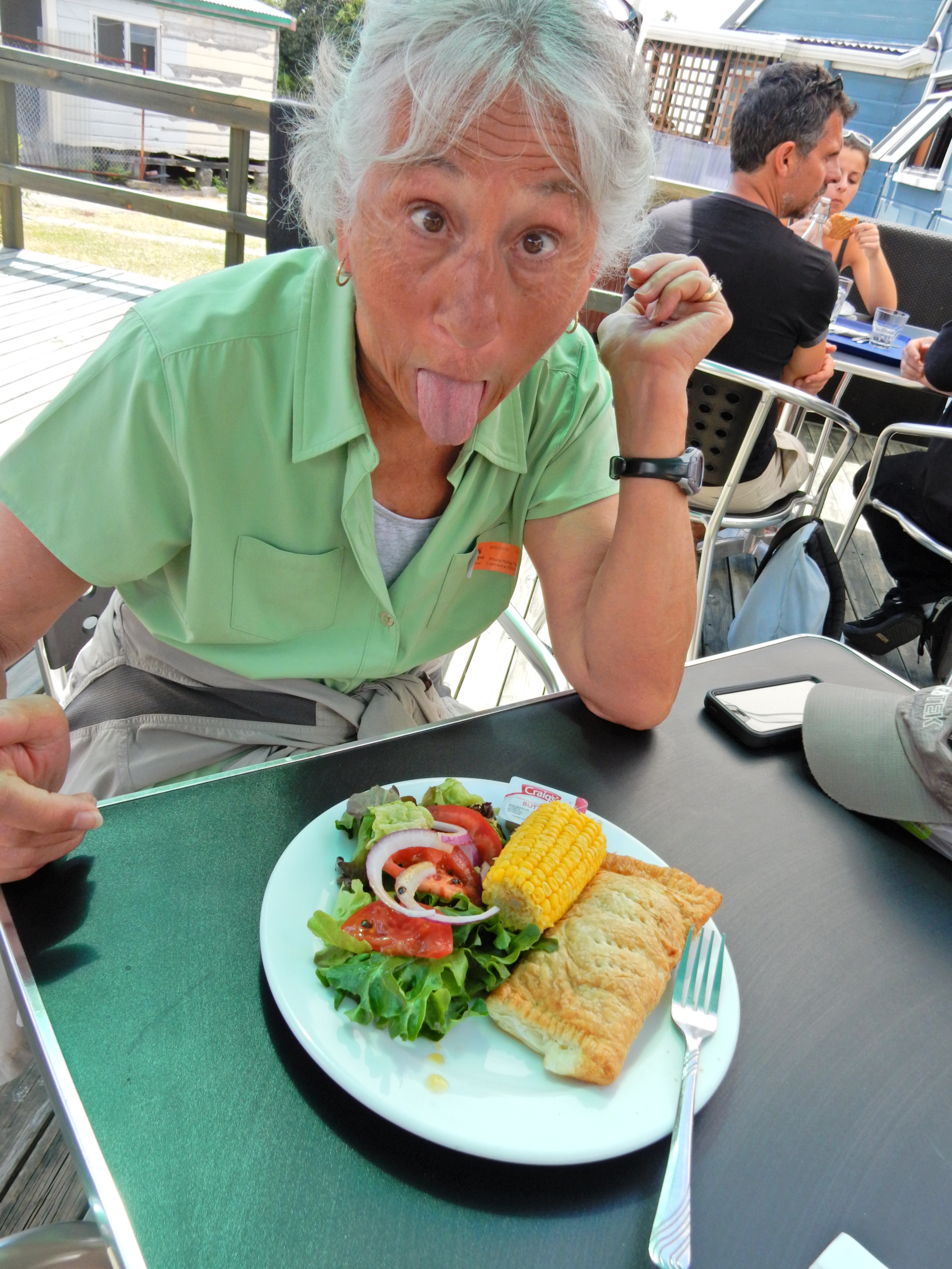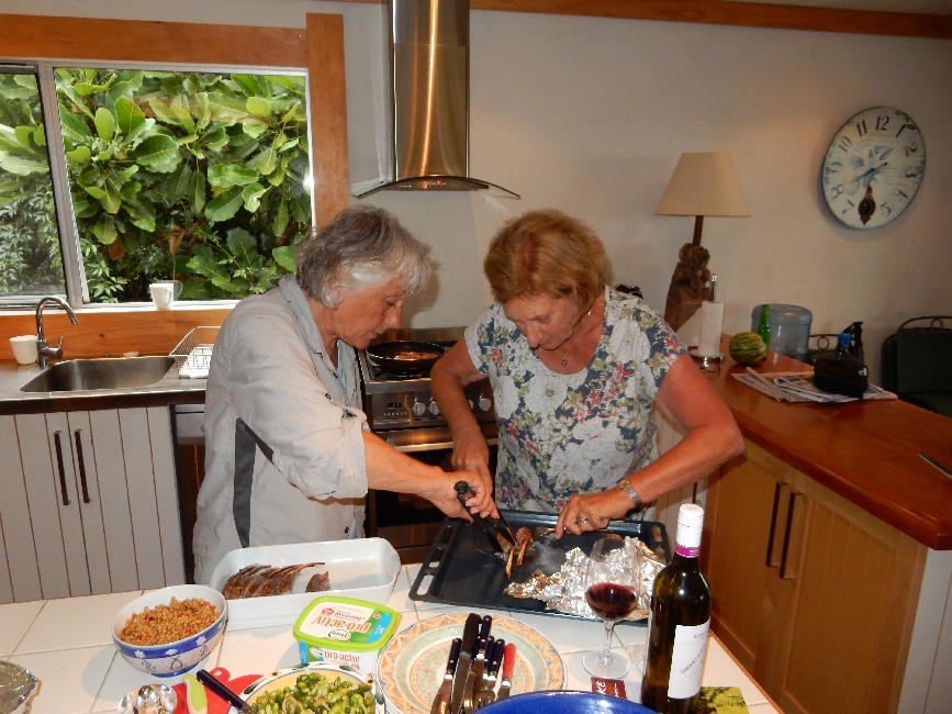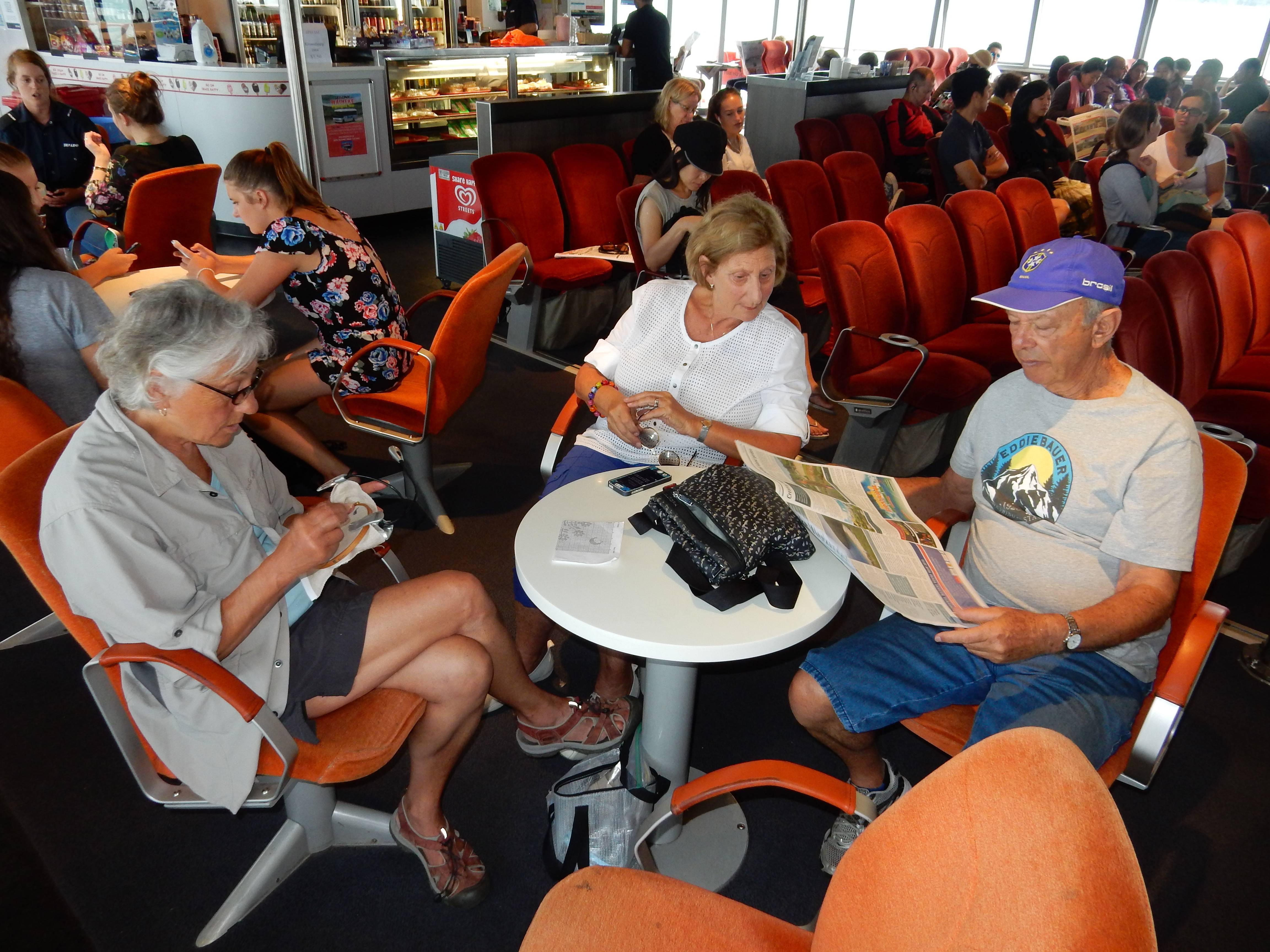 1/31 – Auckland, New Zealand – Helen & Sue started the day with a walk along the beach and then met friends for coffee at Kahve, which they did every morning we were in Auckland. Helen selfie with Linzi and Sue.