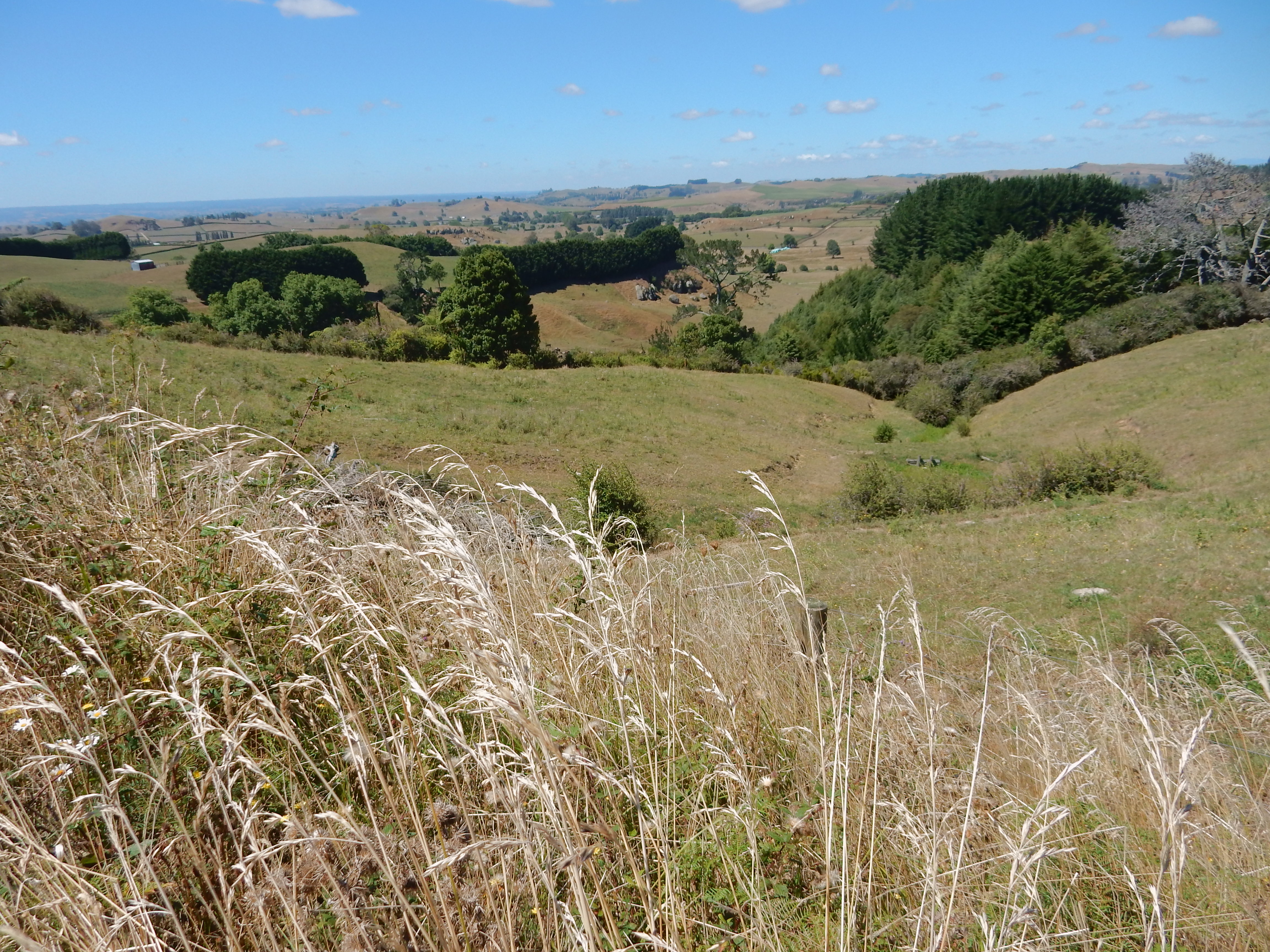 Example of countryside south of Auckland. It was an overcast and rainy day. As a result, the camera adjusted by increasing the exposure for the countryside but as a result the sky was over-exposed.