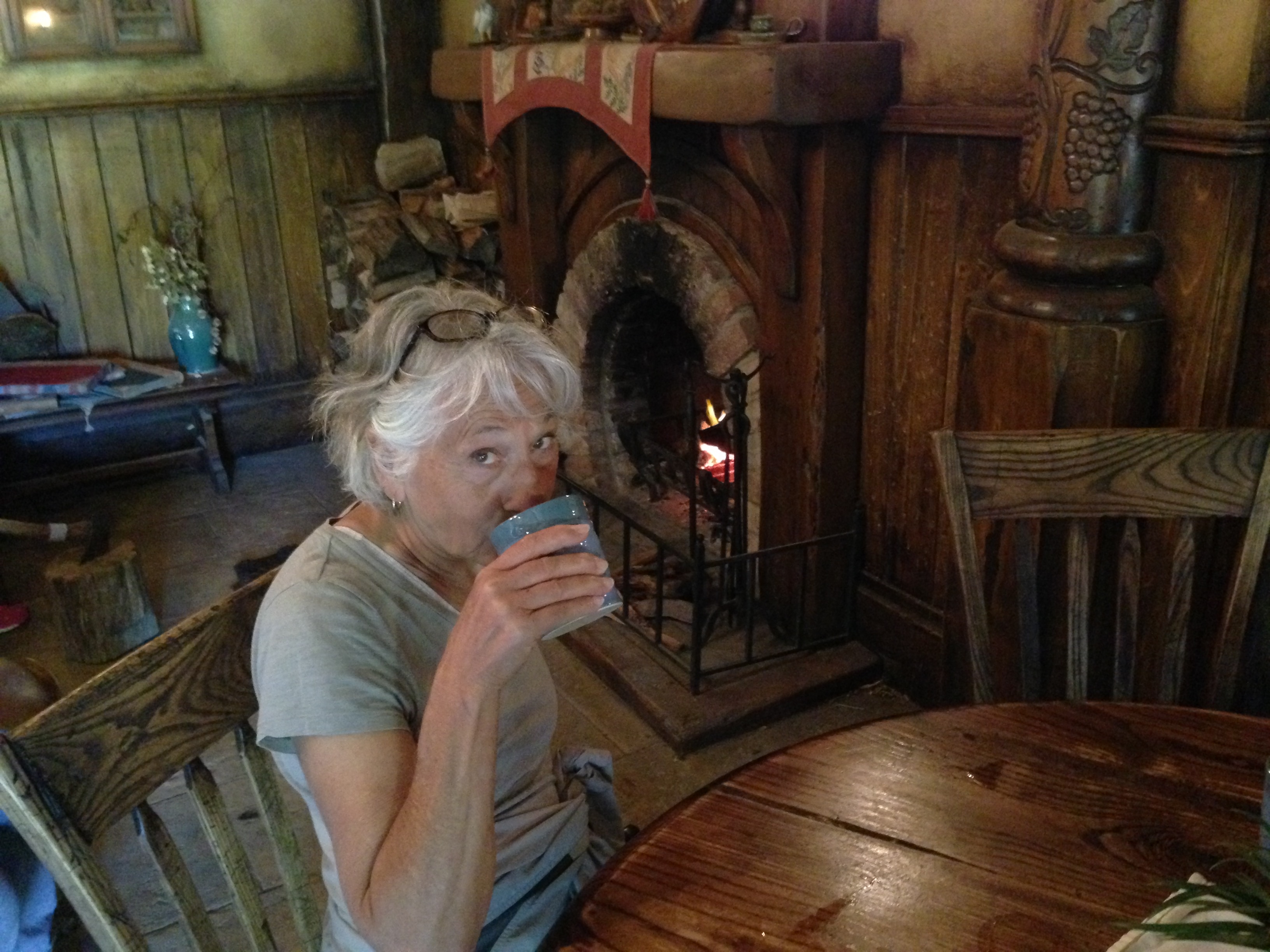 Before going out for dinner, we drove up to the Mt Ruapehu Ski area. There is a formation there that is called Meads Wall – it was used in the Hobbit trilogy. However, the area was socked-in and it was hard to see through the clouds.