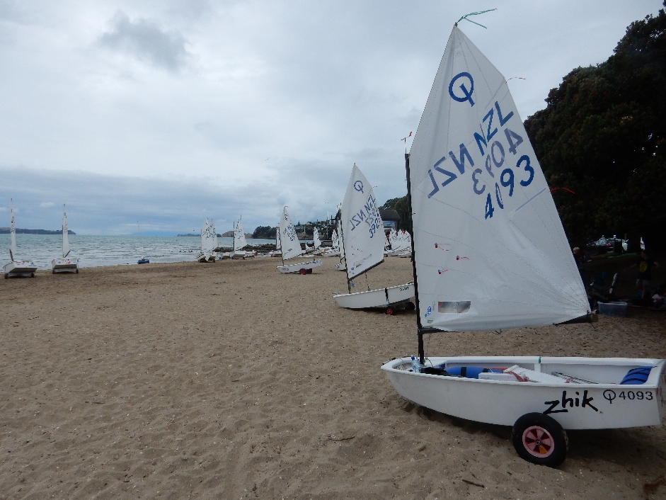 When they returned we had a healthy fruit and cereal breakfast along with freshly ground and prepared coffee – Bob has become a barista extraordinaire. We then drove a short distance to a beach where kids were setting up for an Optimist sailing regatta.