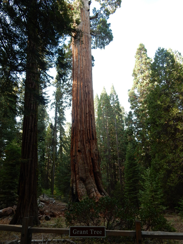 Sunny side of General Grant Tree- the “Nation’s Christmas Tree.” It is the second-largest sequoia in the world. It is 270 foot-tall and has a circumference of 107 feet at its base.